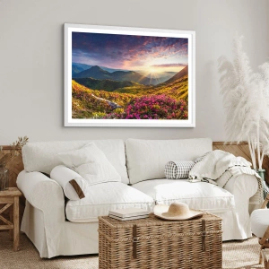 Poster in cornice bianca - La freschezza di un mattino sui monti - 70x50 cm
