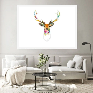Poster - Cervi colorati in stile astratto su sfondo bianco - 50x70cm - Mite cerbiatto immerso nel colore - Decorazione murale moderna per soggiorno e camera da letto ARTTOR