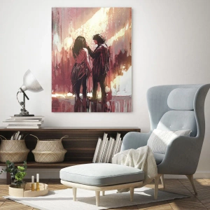 Quadro su vetro - Una coppia nella calda luce di un ambiente astratto - 50x70cm - L'eterno spettacolo dell'amore - Decorazione murale moderna per soggiorno e camera da letto ARTTOR