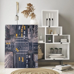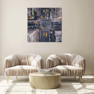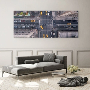 Quadro su vetro - Vista aerea di una trafficata strada cittadina - 70x100cm - Scelta semplice - Decorazione murale moderna per soggiorno e camera da letto ARTTOR