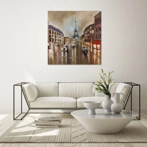 Quadro su vetro - Paesaggio urbano serale di Parigi con vista sulla Torre Eiffel - 80x120cm - Conta solo lei - Decorazione murale moderna per soggiorno e camera da letto ARTTOR