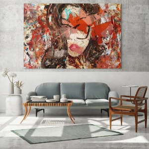 Quadro su vetro - Ritratto astratto di una donna nei toni del rosso e del beige - 50x70cm - Nessuno sa come sei veramente - Decorazione murale moderna per soggiorno e camera da letto ARTTOR