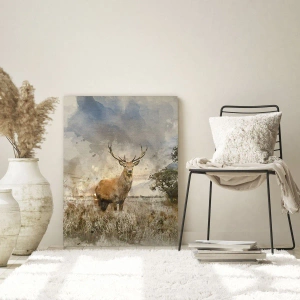 Quadro su vetro - Un cervo in un paesaggio naturale con colori tenui sullo sfondo - 100x70cm - Dignità - forza - maestosità - Decorazione murale moderna per soggiorno e camera da letto ARTTOR