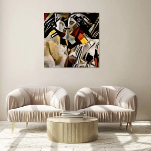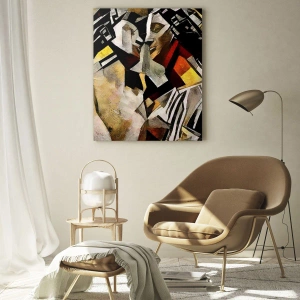 Quadro su vetro - Coppia astratta in motivi geometrici - 50x70cm - Bacio di statue - Decorazione murale moderna per soggiorno e camera da letto ARTTOR