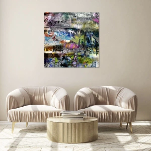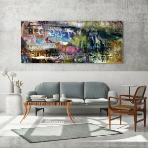 Quadro su vetro - Collage astratto con testo e vari colori - 80x120cm - Collage di ricordi - Decorazione murale moderna per soggiorno e camera da letto ARTTOR