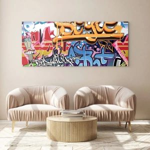 Quadro su vetro - Graffiti colorati con iscrizioni e illustrazioni dinamiche - 120x50cm - Murali, murali, murali… - Decorazione murale moderna per soggiorno e camera da letto ARTTOR