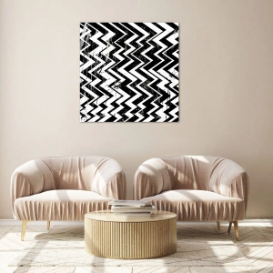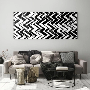 Quadro su vetro - Un motivo a zigzag bianco e nero dalla composizione e dalla consistenza dinamiche. - 120x80cm - Zig-bianco, zag-nero - Decorazione murale moderna per soggiorno e camera da letto ARTTOR