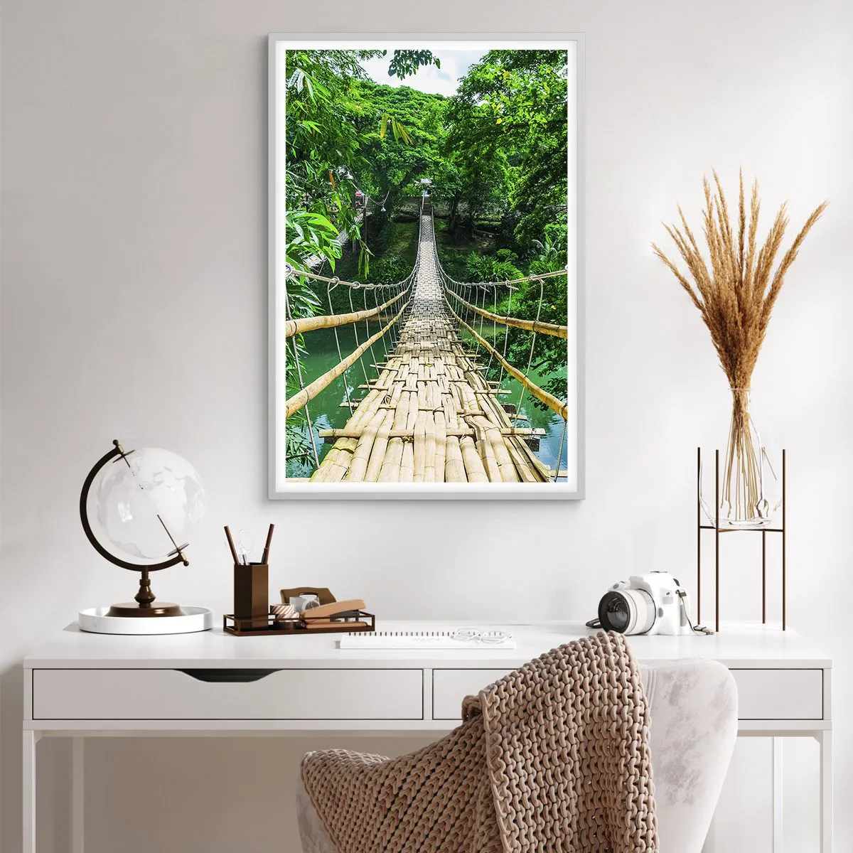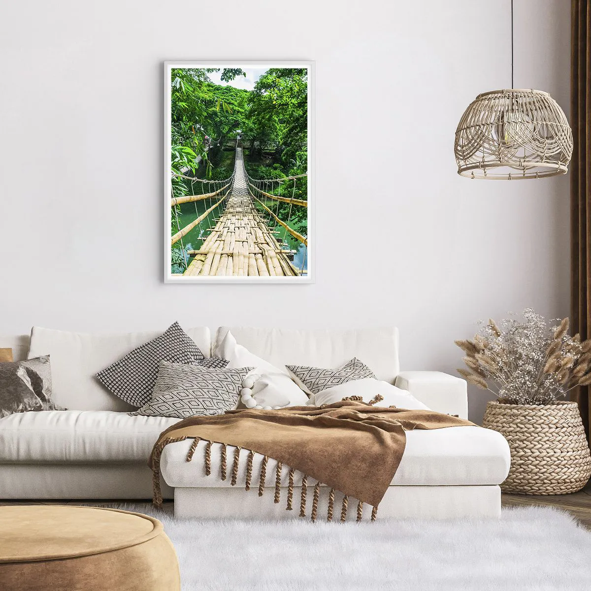 Poster in cornice bianca - Ponte sospeso sopra il verde - 61x91 cm