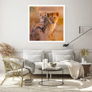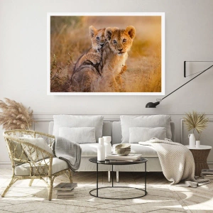 Poster - Adorabili cuccioli di leone nel loro ambiente naturale - 100x70cm - Non disturbare! Giochiamo - Decorazione murale moderna per soggiorno e camera da letto ARTTOR