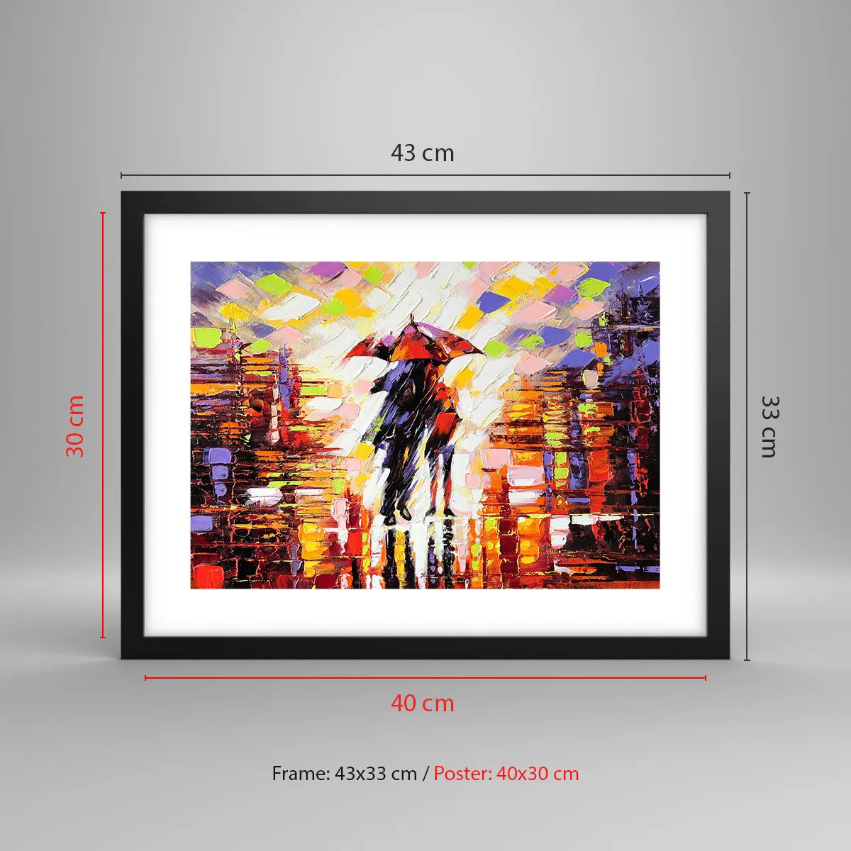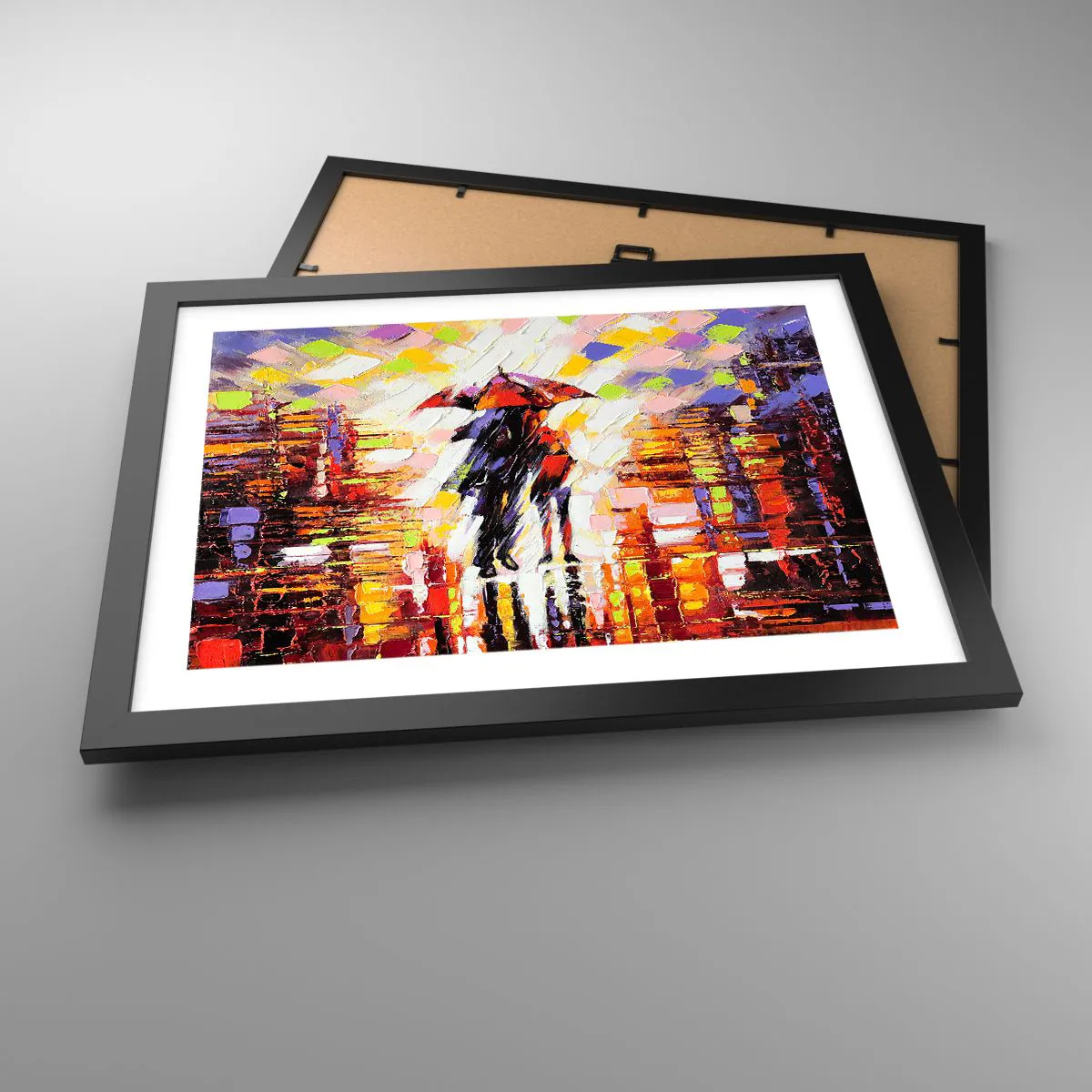 Poster in cornice nera - Insieme nella notte e nella pioggia - 40x30 cm
