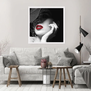 Poster - Ritratto in bianco e nero di una donna con le labbra rosse - 100x70cm - Studio in scarlatto - Decorazione murale moderna per soggiorno e camera da letto ARTTOR