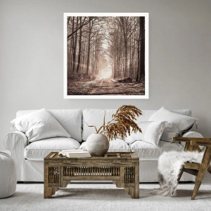 Poster - Un sentiero nel bosco tra alberi color seppia - 100x70cm - La cattedrale del bosco - Decorazione murale moderna per soggiorno e camera da letto ARTTOR