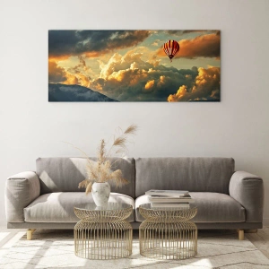 Quadro su vetro - Un pallone sullo sfondo di nuvole spettacolari - 160x50cm - Volo perché voglio - Decorazione murale moderna per soggiorno e camera da letto ARTTOR