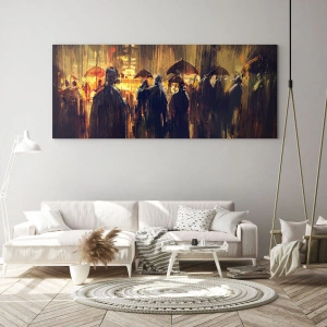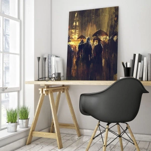 Quadro su vetro - Figure con ombrelli in una città piovosa di notte - 70x100cm - Gli adoratori della pioggia - Decorazione murale moderna per soggiorno e camera da letto ARTTOR