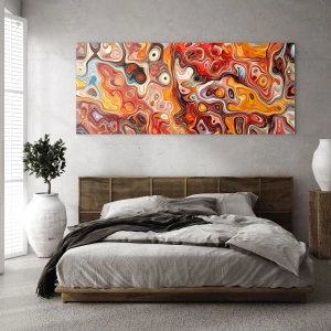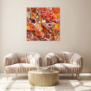 Quadro su vetro - Una composizione astratta nelle calde tonalità del rosso, dell'arancione e del giallo. - 70x100cm - Come se le noci si sciogliessero nel miele - Decorazione murale moderna per soggiorno e camera da letto ARTTOR