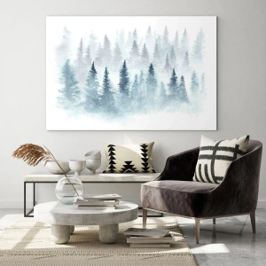 Quadro su vetro - Foreste di conifere immerse in una delicata nebbia - 160x50cm - Avvolti nella nebbia - Decorazione murale moderna per soggiorno e camera da letto ARTTOR