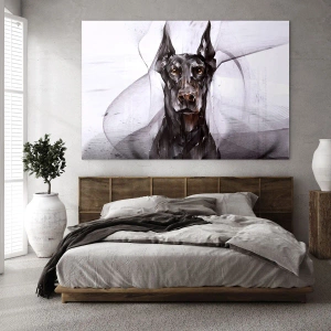 Quadro su vetro - Ritratto di un cane nero in stile astratto su uno sfondo chiaro - 100x70cm - Nobili natali - Decorazione murale moderna per soggiorno e camera da letto ARTTOR
