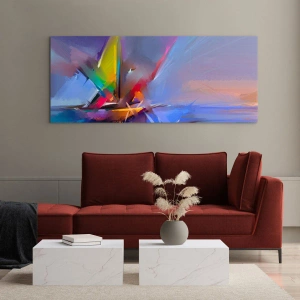 Quadro su vetro - Eliche astratte dai colori vivaci contro un cielo pastello - 70x50cm - Eliche come un uccello - Decorazione murale moderna per soggiorno e camera da letto ARTTOR