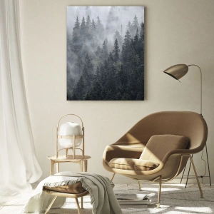 Quadro su vetro - Alba nel bosco - 50x50 cm