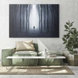 Quadro su vetro - Una figura in una foresta oscura con la nebbia sullo sfondo - 50x70cm - E tutto è semplice e chiaro - Decorazione murale moderna per soggiorno e camera da letto ARTTOR