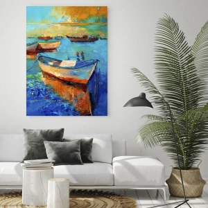 - Barche colorate galleggiano serenamente sull'acqua, riflettendo la luce e creando splendidi riflessi. Una scelta perfetta per interni pieni di armonia e tranquillità.