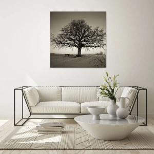 Quadro su vetro - Un albero solitario in un paesaggio monocromatico - 50x70cm - Da qui all'eternità - Decorazione murale moderna per soggiorno e camera da letto ARTTOR