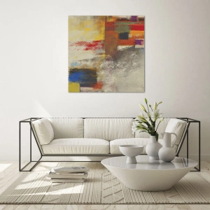 Quadro su vetro - Astrazione colorata con forme geometriche - 120x50cm - Geometria dei colori - Decorazione murale moderna per soggiorno e camera da letto ARTTOR