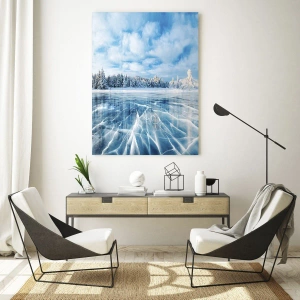 Quadro su vetro - Un lago ghiacciato circondato da una foresta innevata - 140x50cm - Vista lucente e cristallina - Decorazione murale moderna per soggiorno e camera da letto ARTTOR
