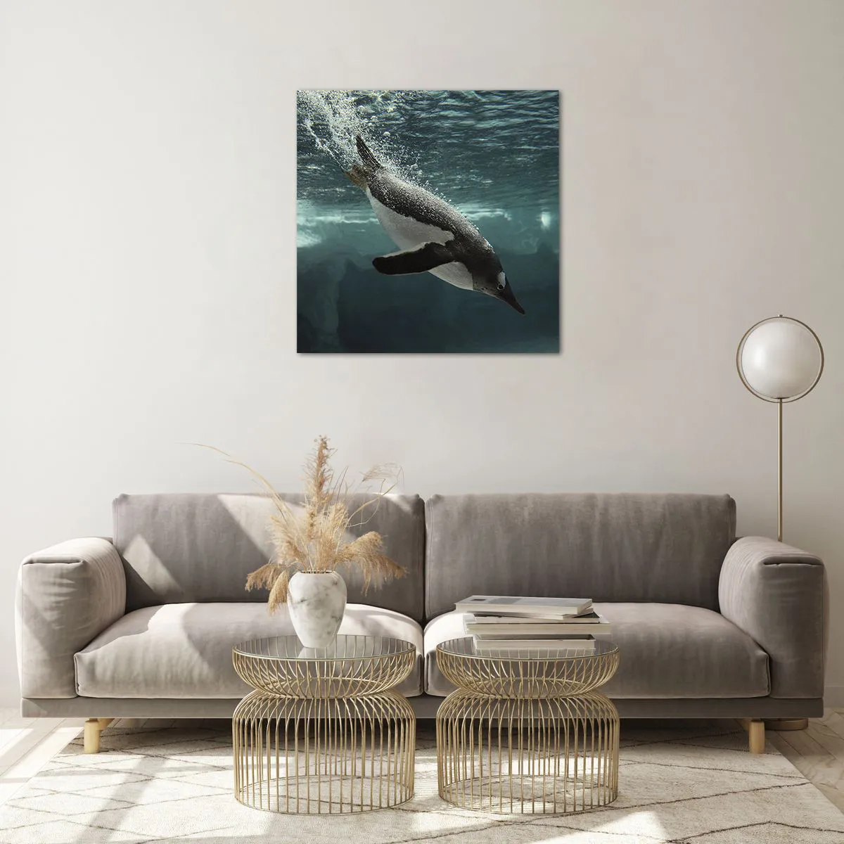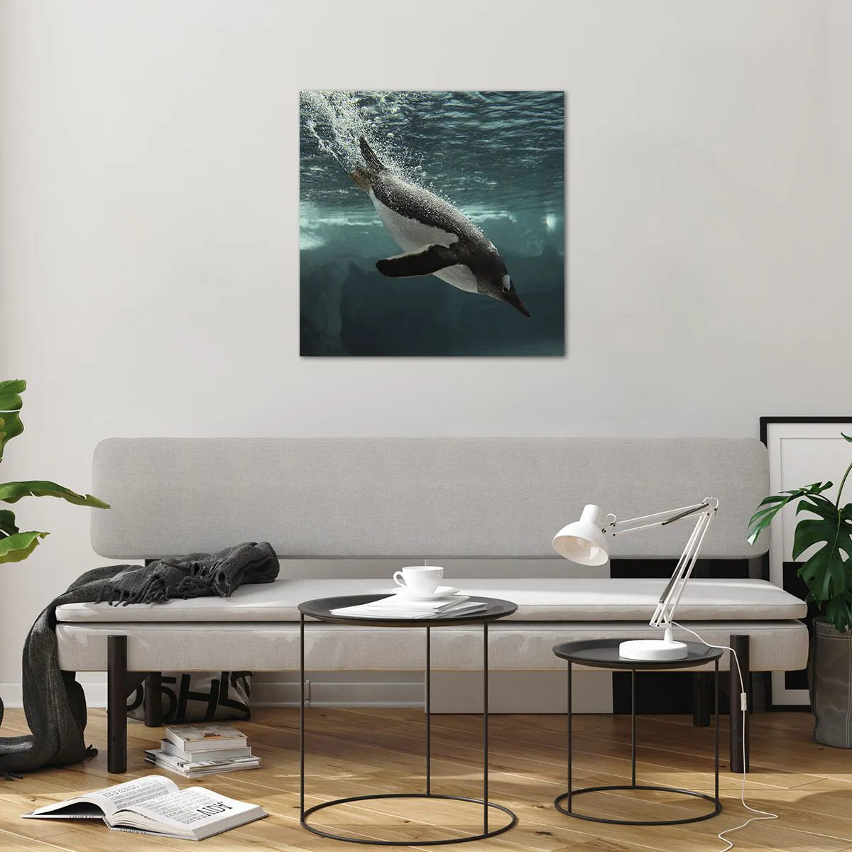 Il quadro su vetro è realizzato con vetro dello spessore di 4 mm. I bordi del vetro hanno una smussatura trapezoidale. Il quadro è sicuro nel suo utilizzo ed è pronto per essere appeso: possiede dei punti di sospensione metallici fissati alla parte posteriore del quadro e dei distanziatori in schiuma che permettono una distanza uniforme del quadro dalla parete.