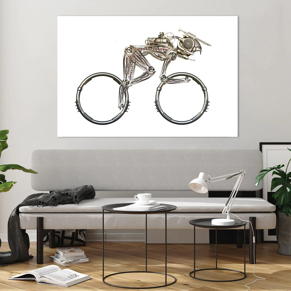 Quadro su vetro - Bicicletta industriale in metallo - 120x80cm - Macchina perfetta - Decorazione murale moderna per soggiorno e camera da letto ARTTOR