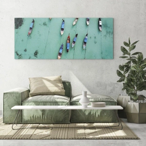 Il quadro su vetro è realizzato con vetro dello spessore di 4 mm. I bordi del vetro hanno una smussatura trapezoidale. Il quadro è sicuro nel suo utilizzo ed è pronto per essere appeso: possiede dei punti di sospensione metallici fissati alla parte posteriore del quadro e dei distanziatori in schiuma che permettono una distanza uniforme del quadro dalla parete.