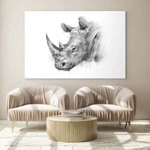 Quadro su vetro - Ritratto in bianco e nero di un rinoceronte in un approccio artistico - 100x70cm - Ritratto africano - Decorazione murale moderna per soggiorno e camera da letto ARTTOR