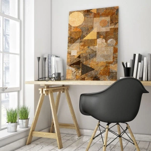 Quadro su vetro - Figure geometriche astratte in tonalità calde - 70x100cm - Studio cubista in marrone - Decorazione murale moderna per soggiorno e camera da letto ARTTOR