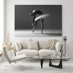 Quadro su vetro - Una ballerina in una posa elegante su uno sfondo bianco e nero - 70x100cm - Bella ballerina - Decorazione murale moderna per soggiorno e camera da letto ARTTOR