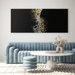 Quadro su vetro - Leone nell'ombra - 120x80cm - Bellezza tenebrosa - Decorazione murale moderna per soggiorno e camera da letto ARTTOR