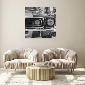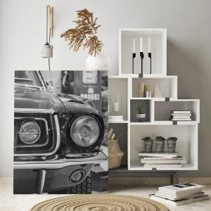Quadro su vetro - Primo piano della parte anteriore di un'auto da corsa classica - 50x70cm - A rotta di collo - Decorazione murale moderna per soggiorno e camera da letto ARTTOR