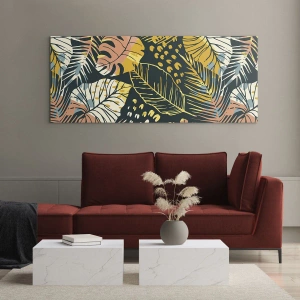 Quadro su vetro - Foglie colorate su uno sfondo scuro - 80x120cm - Fantasia di foglie - Decorazione murale moderna per soggiorno e camera da letto ARTTOR