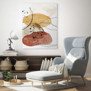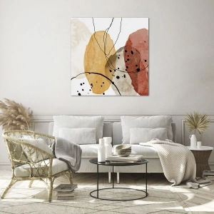 Quadro su vetro - Macchie astratte color terra con linee sottili - 100x70cm - Come aria leggera e trasparente - Decorazione murale moderna per soggiorno e camera da letto ARTTOR