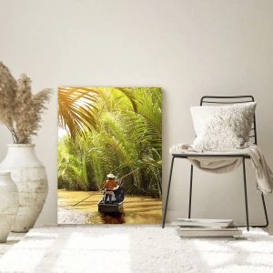 Quadro su vetro - Una barca su un fiume circondata da vegetazione tropicale - 80x120cm - Tunnel di palme - Decorazione murale moderna per soggiorno e camera da letto ARTTOR