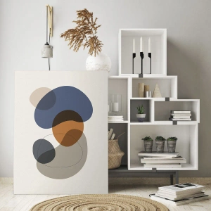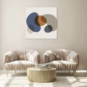Quadro su vetro - Forme astratte colorate nelle tonalità del blu e del marrone - 120x50cm - Gocce di colore - Decorazione murale moderna per soggiorno e camera da letto ARTTOR