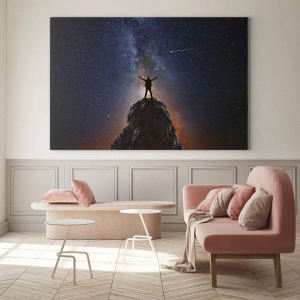 Quadro su vetro - Silhouette di un uomo in cima a una roccia sotto un cielo stellato - 100x70cm - La forza è con me! - Decorazione murale moderna per soggiorno e camera da letto ARTTOR