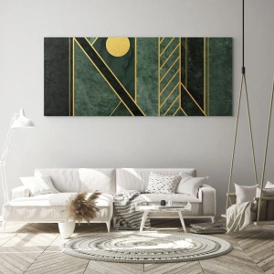 Quadro su vetro - Dinamica di oro e azzurro - 90x30 cm