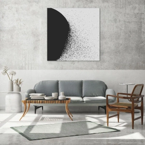 Quadro su vetro - Motivo astratto con particelle nere su sfondo chiaro - 120x50cm - Il movimento delle particelle - Decorazione murale moderna per soggiorno e camera da letto ARTTOR