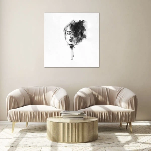 Quadro su vetro - Ritratto in bianco e nero di una donna con un'ombra astratta - 50x70cm - Cosa sogna la ragazza - Decorazione murale moderna per soggiorno e camera da letto ARTTOR