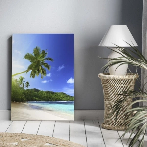 Se stai cercando una decorazione che porti armonia e un'atmosfera estiva ai tuoi interni, la stampa su tela "Spiaggia tropicale con palme e mare turchese" è la scelta perfetta.
