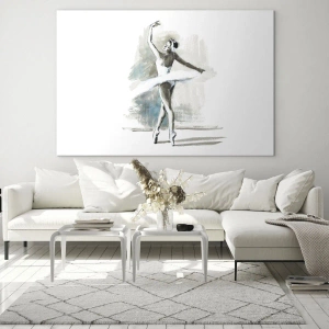 L'estetica del dipinto si basa sui contrasti, tra il bianco del costume e le ombre morbide sullo sfondo, che creano un effetto visivo unico. Ogni elemento della composizione è stato attentamente considerato per evidenziare non solo il movimento della ballerina, ma anche le emozioni espresse nei suoi gesti e nella sua postura. Il dipinto è caratterizzato da una forma semplice, eppure evoca sentimenti profondi associati alla bellezza e alla passione del balletto. Questo approccio conferisce alla scena una dimensione simbolica: la ballerina diventa una metafora di libertà, leggerezza e perfezione. Il prodotto è stato realizzato da ARTTOR, garantendo alta qualità e durata. La superficie in vetro non solo protegge l'opera d'arte, ma aggiunge anche un'elegante lucentezza all'intera opera. Il dipinto misura 70x50 cm in orientamento orizzontale, rendendolo un'aggiunta ideale sia per ampi soggiorni che per camere da letto più intime. La tecnica di stampa su vetro aggiunge un tocco moderno, rendendo l'immagine perfettamente integrabile in una varietà di stili d'interni, dal classico al minimalismo contemporaneo.