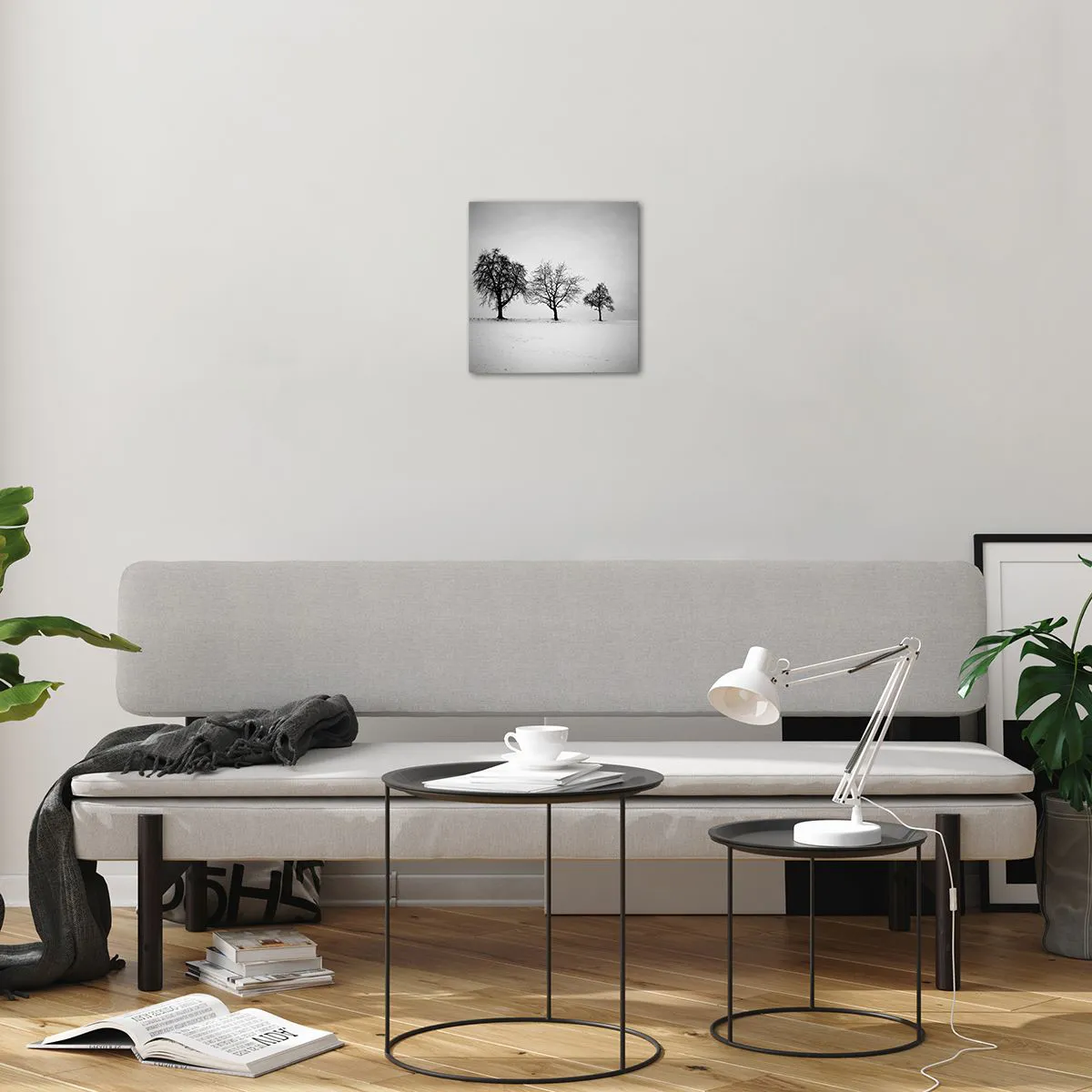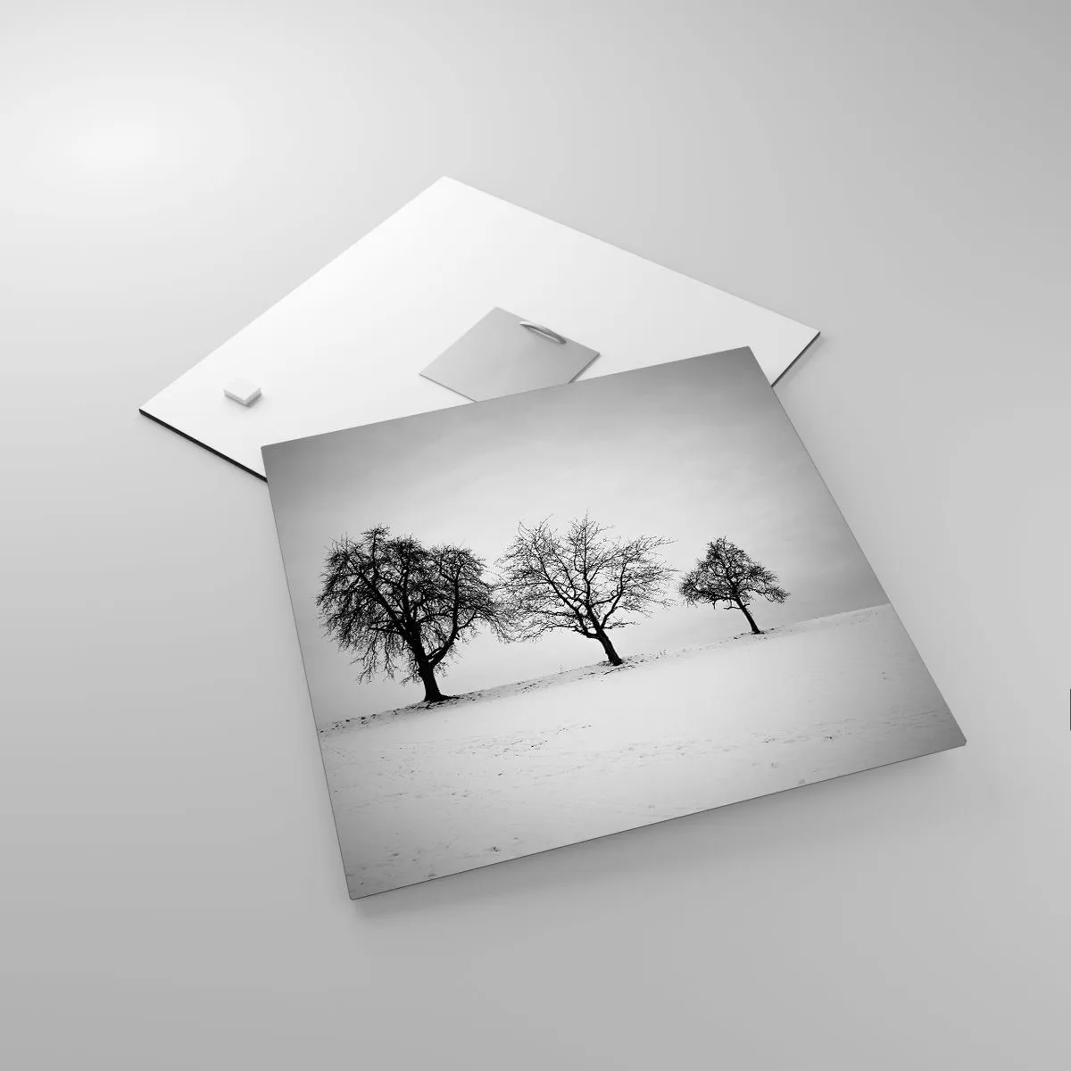 Il quadro su vetro è realizzato con vetro dello spessore di 4 mm. I bordi del vetro hanno una smussatura trapezoidale. Il quadro è sicuro nel suo utilizzo ed è pronto per essere appeso: possiede dei punti di sospensione metallici fissati alla parte posteriore del quadro e dei distanziatori in schiuma che permettono una distanza uniforme del quadro dalla parete.