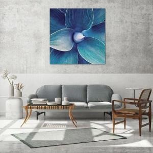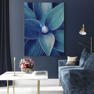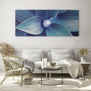 Quadro su vetro - Macrofotografia di una pianta nelle tonalità del blu - 120x80cm - Imbluito dal sole - Decorazione murale moderna per soggiorno e camera da letto ARTTOR