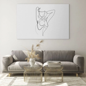 Quadro su vetro - Una silhouette femminile disegnata con una singola linea su uno sfondo bianco - 100x70cm - Davvero, come sei... - Decorazione murale moderna per soggiorno e camera da letto ARTTOR