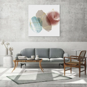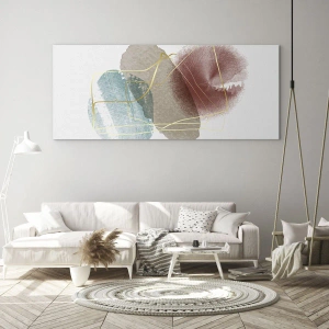Quadro su vetro - Schizzi di acquerello astratti e linee dorate - 100x70cm - Coralli dello spazio - Decorazione murale moderna per soggiorno e camera da letto ARTTOR